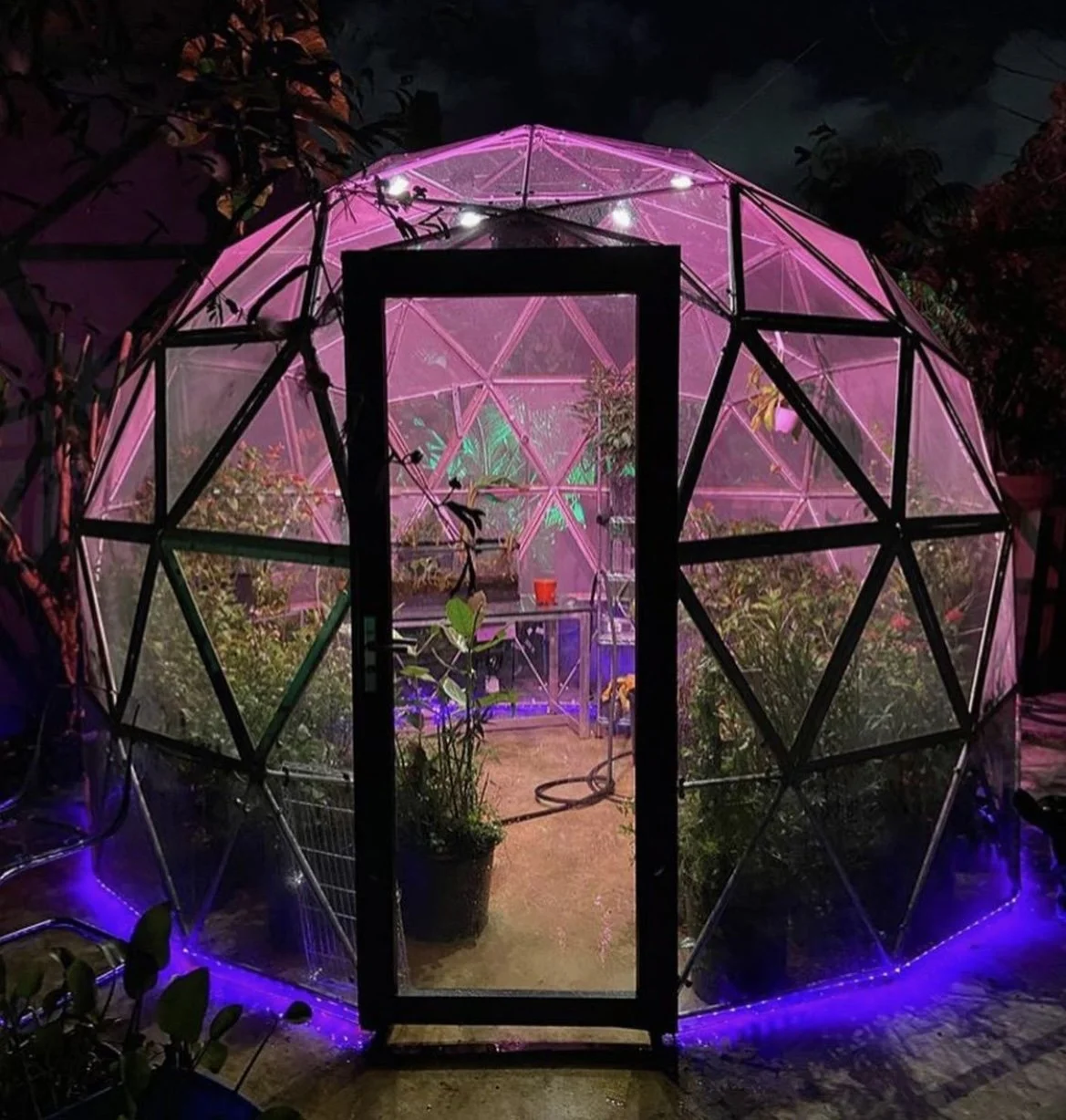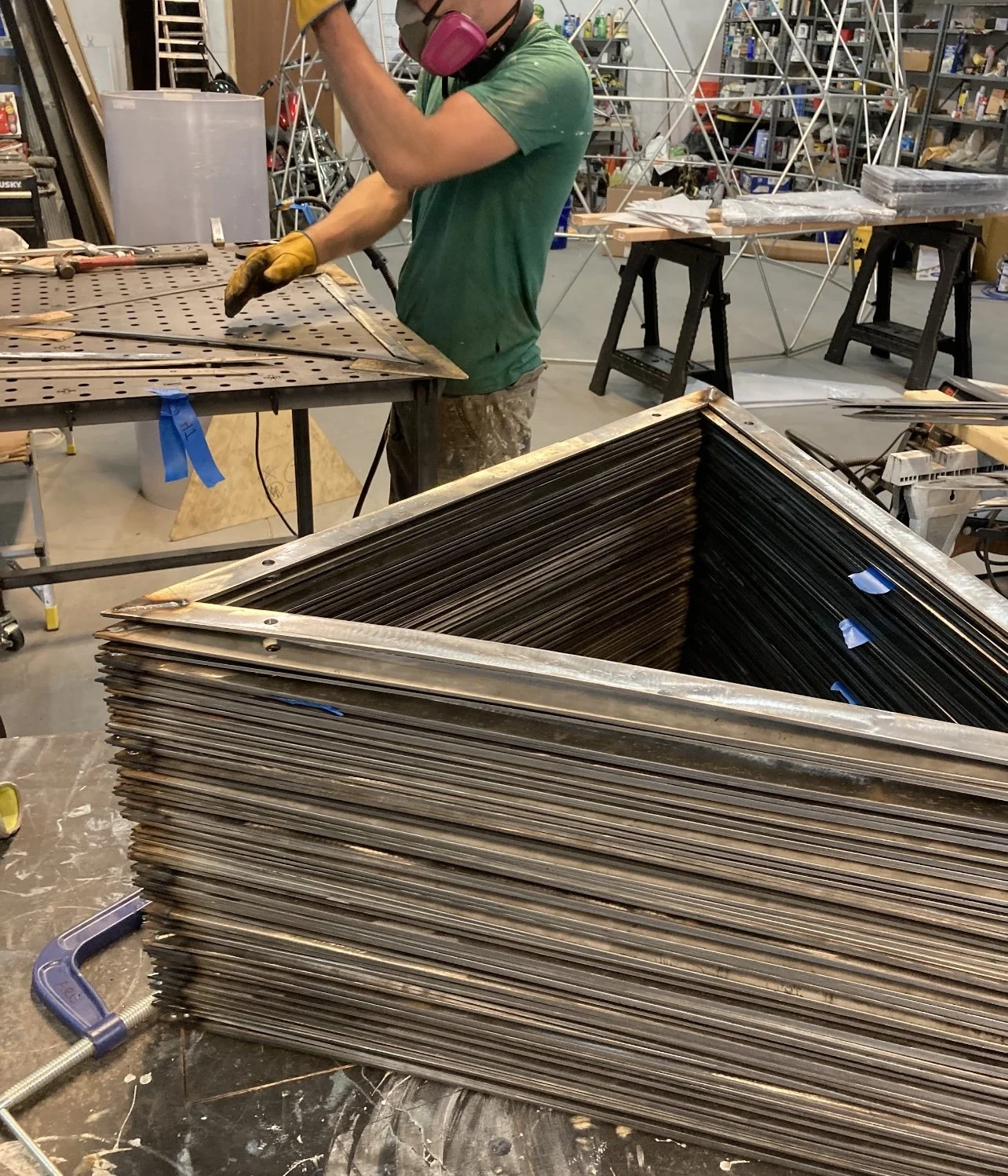 A 12ft custom welded steel, mesh and plexiglass. Integrated electrical and lighting with specialty electrical system to support the butterfly’s habitat.